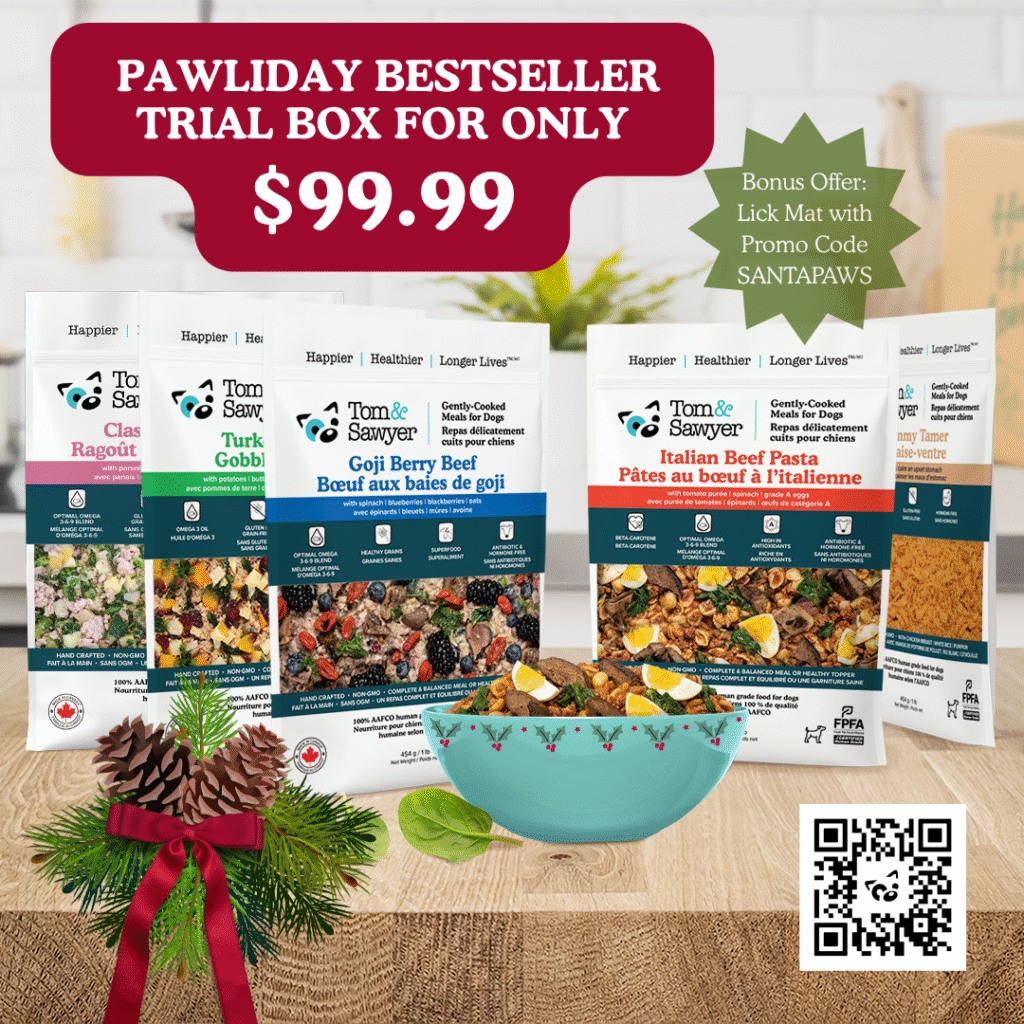 Introducing the Tom&Sawyer Pawliday Bestseller Trial Box — a festive feast featuring 10 delicious 454g meals of 100% human-grade, gently cooked goodness. Your pup will drool over our most-loved recipes: Turkey Gobbler, Classic Pork Stew, Goji Berry Beef, Italian Beef Pasta, and Tummy Tamer — all for just $99.99. Exclusive for Local Paws readers: enjoy a FREE lick mat with your order using promo code SANTAPAWS at checkout!* Perfect for holiday dinners, gift-giving, and seasonal celebrations — this limited-time offer won’t last long! Shop Now.
