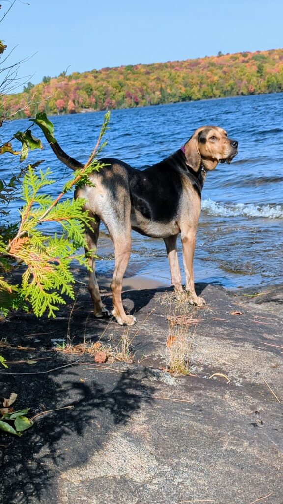 Butter’s favourite things to do are snuggling, sleeping, stalking rabbits, and sunbathing. He’s fascinated with children playing and often gravitates to the sound of their laughter. The neighbourhood children adore him, often calling out his name and running to pet and hug him whenever we’re out walking him. He is the sweetest, most gentle dog, and many people comment on this upon meeting him.
